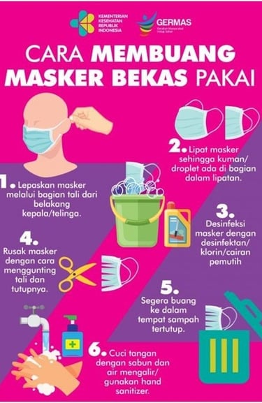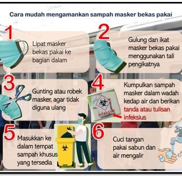 Bund, apabila terpaksa menggunakan masker sekali pakai, berikut langkah-langkah yang harus kita lakukan dalam pengelolaan limbah masker sekali pakai, supaya tidak ada penyalahgunaan masker di masyarakat.