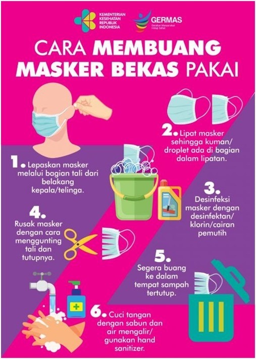 Nah, kira-kira apakah cara kita membuang masker sekali pakai yang digunakan sehari-hari sudah benar? Dan apa saja yang harus kita lakukan terhadap masker bekas sekali pakai yang sudah tidak digunakan ?